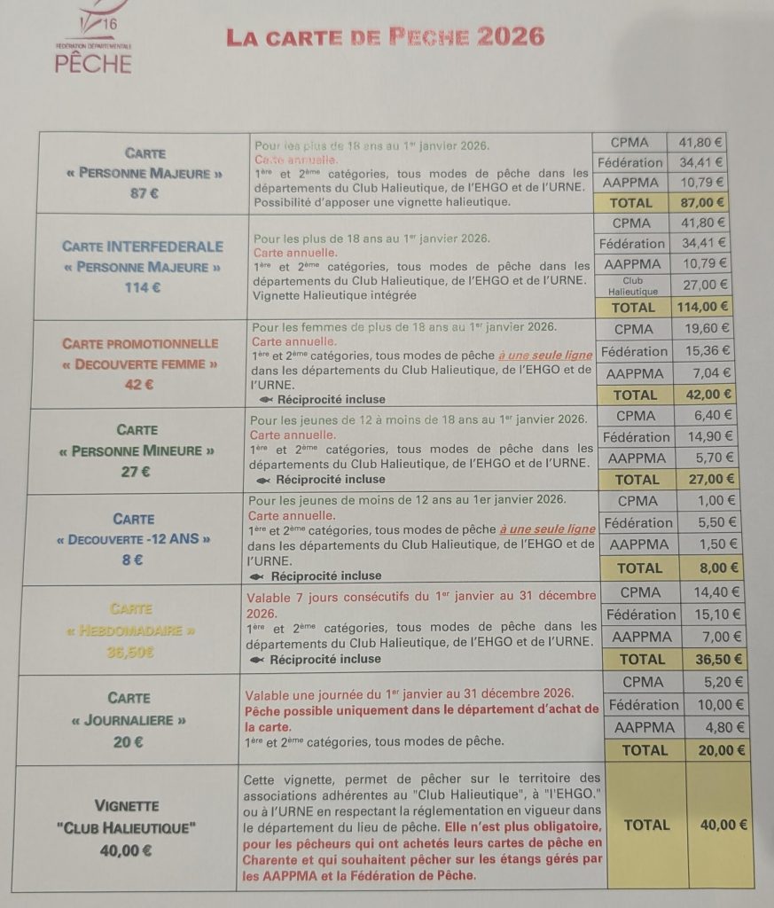 Depuis le mercredi 17 décembre 2025 , les cartes de pêche 2026 sont en vente.